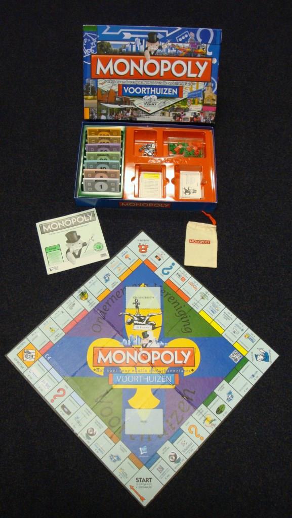 Andere erg mooie projecten zijn bijv. een officieel Monopoly spel in eigen huisstijl. Dit hebben we in 2012 mogen verzorgen voor de OndernemersVereniging Voorthuizen : Monopoly Voorthuizen werd gemaakt waarbij lokale bedrijven straten konden sponsoren waarbij ze ook naamdrager werden van die straat. Ook in de Kans- en Algemeenfonds kaarten kwamen specifieke opdrachten naar voren gericht op de bedrijven. Er zijn zelfs extra sets met kaartjes meegeleverd bij deze gelimiteerde editie zodat er nog meer een lokale sfeer aan het spel is komen te hangen. Net zoals de extra dobbelsteen waarmee je het spel versneld kunt spelen. En zeer duurzame vorm van branding van een dorp of stad.